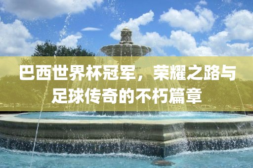 巴西世界杯冠军的荣耀之路,是足球传奇的不朽篇章,回顾这段历程,我们不禁为巴西足球的辉煌成就而感叹,我们也期待着未来有更多的球队和球员,在世界杯赛场上续写属于自己的传奇故事,让我们共同期待下一届世界杯的到来,见证更多精彩瞬间和荣耀时刻!