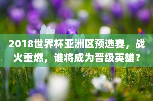 摘要:在激烈的2018世界杯亚洲区预选赛中,战火再次点燃,各大球队为了晋级世界杯展开激烈角逐。究竟谁能在这场硬仗中脱颖而出,成为晋级英雄,悬念重重,令人期待。
