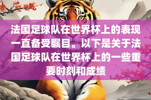法国足球队在世界杯上的表现一直备受瞩目。以下是关于法国足球队在世界杯上的一些重要时刻和成绩