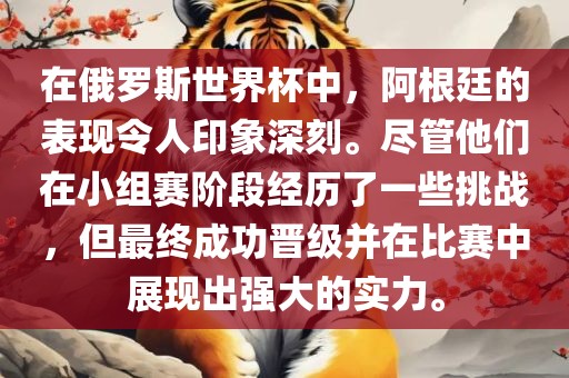 在俄罗斯世界杯中,阿根廷的表现令人印象深刻。尽管他们在小组赛阶段经历了一些挑战,但最终成功晋级并在比赛中展现出强大的实力。