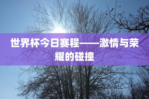 • 转载请注明来自眉山市正发家政服务有限公司,本文标题:《世界杯今日赛程——激情与荣耀的碰撞》