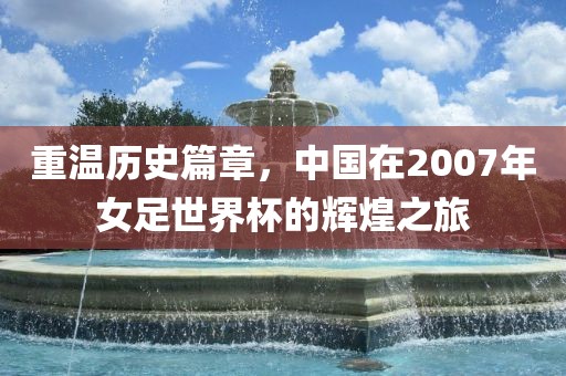 重温历史篇章,中国在2007年女足世界杯的辉煌之旅