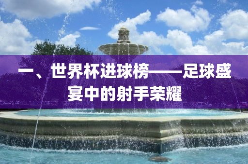 • 转载请注明来自眉山市正发家政服务有限公司,本文标题:《一、世界杯进球榜——足球盛宴中的射手荣耀》