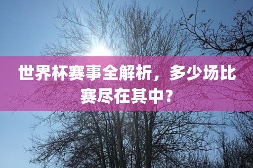 本文摘要如下:,,世界杯赛事全面解析,涵盖多场比赛。文章详细介绍了整个赛事的赛程安排和比赛数量,包括小组赛、淘汰赛等各个阶段的具体赛事。文章旨在为观众提供全面的赛事信息,帮助球迷们更好地了解和关注世界杯比赛。