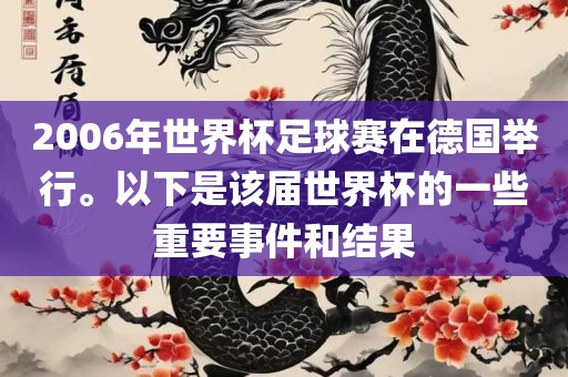 2006年世界杯足球赛在德国举行。以下是该届世界杯的一些重要事件和结果