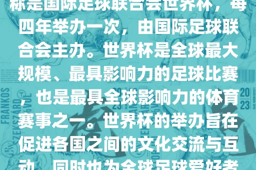世界杯是一项具有全球影响力的体育盛事,它不仅促进了足球运动的发展和普及,也促进了各国之间的文化交流与互动,作为球迷们翘首以盼的盛事,它为世界各地的足球爱好者带来了一场难忘的足球盛宴。
